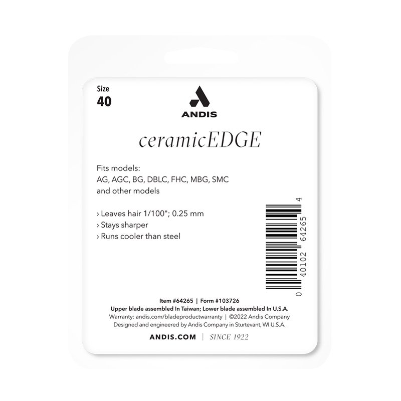 Crea peinados a tu manera con la cuchilla desmontable Andis UltraEdge tamaño 40 ideal para su uso en mascotas de cualquier raza dejando el pelo en 1/100″ o 0,25 mm.