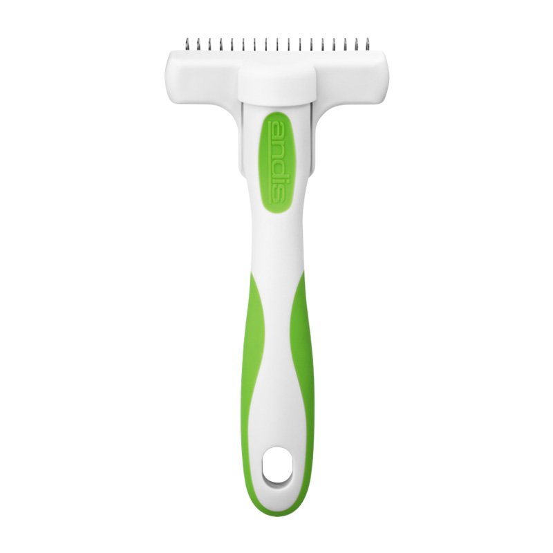 La herramienta Andis Deslanador conquista el cabello sin dañar la piel ni la capa superior. Utilizado por profesionales, los dientes de acero inoxidable ayudan a domar las esteras y eliminar el exceso de volumen que distrae la atención de cualquier espectador. El agarre ergonómico y antideslizante se adapta cómodamente a tu mano, ya sea que estés domesticando abrigos de Terrier o quitando el pelo a un gato en el salón. Esta herramienta Andis de alta calidad no solo mantiene el pelaje fresco, sino que también reduce la caída hasta en un 90%. La forma y el patrón de dientes únicos eliminan el vello suelto sin dañar la capa superior. Úsala 2 o 3 veces por semana en razas de pelaje delicado y elimina la primera y segunda capa de pelos que estén muertos o sueltos. Una excelente herramienta qué ayuda y soluciona de manera eficaz este proceso.